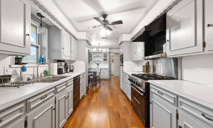 Spacious home with two large living areas with games and foosball, a back porch to relax on or grill out, 4 bedrooms, 3.5 bathrooms, chef's kitchen and huge, luxurious master bath. Casper mattresses and pillows throughout and a fully stocked laundry room.