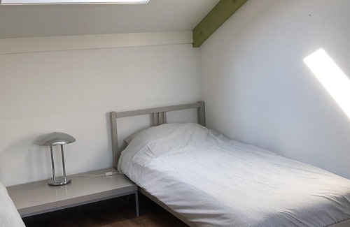 The house has 3 floors and is fully equipped. It has 3 bedrooms; 1 with a double bed (140 wide), 1 room with 3 single beds and a room with a single bed and a loft bed. There is also a cot in this room.