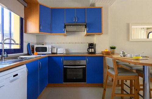 - On the main floor is the entrance, the living room-kitchen and the terrace with two sun loungers. The kitchen is fully equipped, with dishwasher, washing machine, kitchen utensils...Even with a device to filter the water so that it is drinkable. In addition, the living room has a Smart TV with international channels (Spain, United Kingdom, Germany...), all European sports such as the Spanish League, Premier League...