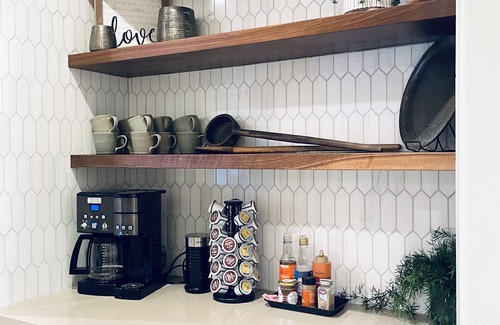 Spacious 10 foot ceiling home offers 2 rooms with Queen beds, new luxury sheets, and bedding in each room, as well as 2 full sized bunk beds in the bunk room. Convenient washer and dryer in the laundry room with stocked laundry products and toiletries. Pool table, and board games available for use. Kitchen has baking essentials and spices, an oversized island with extra seating, gas range, and reverse osmosis drinking water system. Additional sleeping options include a Queen couch pull-out in the game room.
