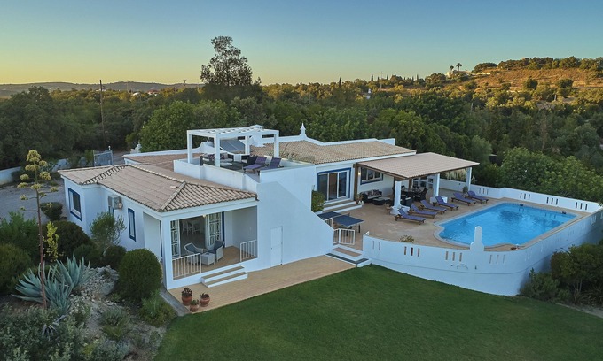 A spacious family villa surrounded by a lovely garden with a private salt water heated swimming pool (12 x 5.5 m) with roman steps looking onto an amazing view of the surrounding area only 15 minutes from Faro airport. The living room opens onto a south facing terrace, an outdoor dining area with a complete summer kitchen ,including a charcoal and gas bbq, ideal for relaxing and indulging in Al fresco meals. The villa is situated in a charming area with a simple country bar within a 3 minute walk or Santa Barbara is just a few kms away where you can find all the local amenities such as a chemist, supermarkets and several popular restaurants. The beautiful town of Loulé is just a 5 minute drive which hosts a farmers and fish market every Saturday. Vale do Lobo, Quinta Golf courses and beaches are all within a 15 minute drive.This is an ideal villa for families with young children.