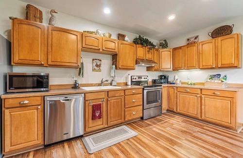 Enjoy our wonderful country farmhouse. Decompress with 15 plus acres of serenity....all to yourself! Picture postcard country retreat located in the beautiful Cougar Gulch area. Lovely farmhouse with rolling meadows, fruit trees and amazing Mountain Views. You may even spot a moose and her babies! If you ever wanted to know what farm life could be like, here is your chance without the work! Instead of rushing cars and planes flying overhead, you'll hear the sounds of song birds, coyotes and moose harkening in the distance. Wake up and enjoy coffee and watch deer grazing in the fields and finish it by watching the sun set over the mountains while or enjoy a hot toddy by the fireplace! This three bedroom plus, has an additional romp room in the large family room upstairs. Two huge living rooms downstairs to accommodate family gatherings. 15 beautiful minutes to Coeur d’Alene yet far enough to relax and breathe the fresh mountain air. Bring the family and stretch out and watch the wildlife and enjoy fresh apples, pears and raspberries when in season. Pick fresh Cherries and lavender in the summer and the ideal spot for bird watchers as well. The ultimate family vacation to reconnect, recharge and experience nature at its best.
