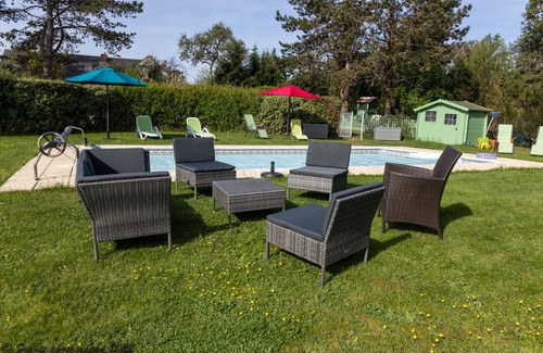 To the rear of the property there is a private garden with fruit trees, a wooden table and chairs, large parasol and bar-b-que which leads to the large garden and the heated swimming pool (10m x 5m), open from mid-May until the end of September. There are various outdoor games to entertain all age groups - badminton, boules, croquet.