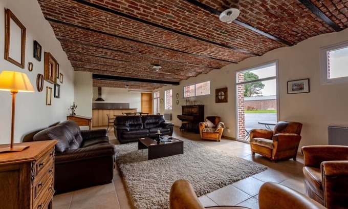 In the former outbuildings of a farmhouse built in 1926 facing a memorial of the First World War, a spacious, comfortable and bright main room welcomes you, with a large living room and a kitchen with table and chairs. A miller's staircase leads to the first floor on a landing serving a bathroom and two bedrooms tastefully decorated with views of the fields.