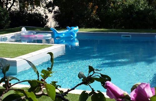 A holiday home classified 4 ears, with 4 bedrooms each with a double bed in 160X200 and 1 playroom with 2 single beds 90X200 and 2 mattresses of 90X200; as well as 2 cots (umbrella), terraces, solarium, veranda and patio. A gite placed in the middle of the vineyards, with no neighbors, with a large swimming pool and outdoor games for children. On request and with supplement possibilities of pitching tents. The house can be rented for 2 nights, weekly, monthly ...