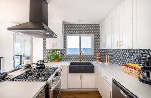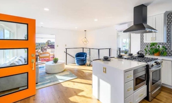 This three-bedroom, three-bathroom home in Bay Park has just had a complete renovation. The terrace off the living room offers breathtaking views. When you enter this updated house, you will be greeted with an open floor plan. It features two bedrooms and two bathrooms in the main living space area. A kitchen with new cabinets, quartz counters, a waterfall island, and designer flooring is also included in the main living areas. The terrace is a comfortable area to unwind, take in the scenery, and enjoy the outdoor living with loved ones. The contemporary kitchen has four highchairs where you and family members can sate your appetite! The french-style doors in this large room combines the interior and outdoor living spaces. At the conclusion of an exciting day, you may relax on the balcony and take in the simple pleasures of the sunset like the photos provided.