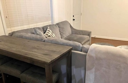 The home is spacious with a living room equipped with a popcorn machine and electric fireplace to watch movies and get cozy ! Also have a den area with a mini drink fridge and all the tools to make a drinking station for adults ! Even comes with a nugget ice maker for convenience! Kitchen is equipped with all the appliances or utensils you would need to cook or bake . Also has a washer and dryer in laundry room.