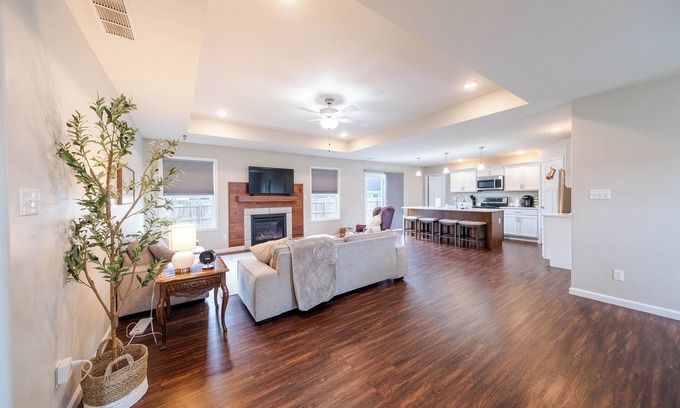 This modern and stylish home is the perfect getaway for groups visiting the University of Illinois! Enjoy the outdoors with a spacious backyard deck and firepit. Inside, you'll find a fully equipped kitchen, three bedrooms, two baths, and a large in-house sauna just off the master bathroom- complete with easy-to-follow instructions for your enjoyment. A deluxe queen-size air mattress is also available, comfortably accommodating up to 8 guests. Relax, unwind, and make the most of your Chambana stay in style!