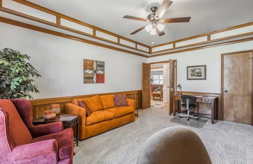 As soon as you step inside our home, you'll notice the wide open floor plan that makes it ideal for entertaining. The living, dining, and game areas flow seamlessly together, creating a perfect space for spending time with family and friends. The large windows throughout the home let in plenty of natural light, creating a bright and inviting atmosphere. When it's time to relax, head outside to our quiet outdoor space. The oversized swimming pool is perfect for a refreshing dip, and the large outdoor living area is a great spot to unwind with a good book or enjoy a meal with loved ones. The big backyard offers plenty of space for kids to run around and play, making it a great option for families with children. Our home features four bedrooms, including one with a king bed, one with a queen bed, and two with twin beds. There is also a sleeper sofa in the 4th bedroom/office accommodate additional guests. If you need to catch up on work during your stay, you'll appreciate the desk area, which provides a quiet and