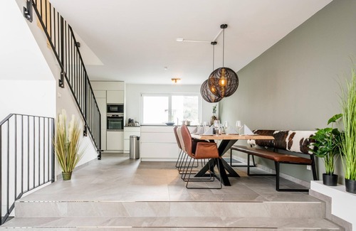 This holiday home is a terraced house in a row of 3 spacious houses. There are 2 parking spaces available under a carport. At one parking space you will find a shared charging point for an e-bike.