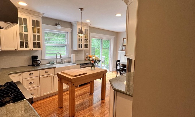 Bright, cozy, spacious modern 4 bedroom, 2.5 bath home in Hudson Rivertown in Tarrytown, NY. Forty minutes by car or train to NYC (2 miles from train station) two minutes by car to beautiful Hudson River views. Neighborhood is directly across from historic Lyndhurst Castle and grounds along the river, perfect for walks at sunset. Nearby hiking and biking trails. Perfect for 8 guests, sleeps 10.