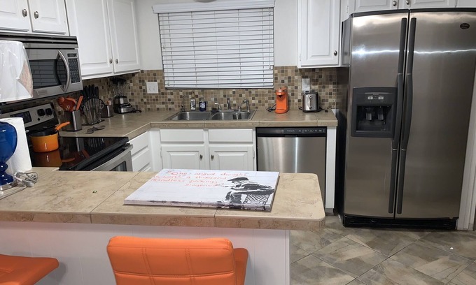 Spacious huge backyard, BBQ, Fire pit and Fooseball table has 3 Bedrooms , 2 Bathrooms, and max occupancy of 9 people. The minimum rental for this property is 1 nights, but this can change depending on the season you plan on staying. Previous guests have given good rated it, and VRBO labeled it a top-rated House because of the excellent services rendered by the owner or manager of this House, and has consistently provided great experiences for their guests. Most families or guests that use it recommend it to their friends and some of them are repeat guests. House has a friendly neighborhood, and the Dobson Ranch has interesting places to visit. If you want to learn more about the House in Dobson Ranch, such as places to visit and things to do nearby, you can check below to learn more.