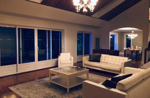 Food & DrinkTea/Coffee makerBathroomShower, Bidet, Shampoo, Body soap, Toilet paper, Toilet, Spa tub, Bathtub, Conditioner, Bathtub or shower, Towels, Private bathroomMedia & TechnologyVideo games, TV, Streaming service (like Netflix), Flat-screen TV, Game consoleGeneralAir conditioning, Carpeted, Mosquito net, Iron, Heating, Private entrance, Trash cans, Fire extinguisher, Ironing facilities, Smoke AlarmActivitiesHot tubOutdoorsOutdoor dining area, Barbecue, Balcony, TerraceKitchenCleaning products, Electric kettle, Refrigerator, Oven, Dining table, Kitchen, Toaster, Washing machine, Wine glasses, Dryer, Dishwasher, Coffee machine, Stovetop, Kitchenware, MicrowaveLiving AreaFireplace, Sitting areaBedroomWalk-in closet, Linens, Wardrobe or closetViewLake view, ViewAccessibilityUpper floors accessible by stairs onlyInternetGame console - PS4Room AmenitiesSocket near the bed |