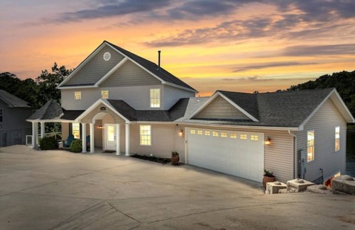 Entertain up to 20 guests comfortably at this spacious Lake of the Ozarks retreat. This home is located in the Heart of Osage Beach at MM-17. Tucked in the back of a deep calm cove, quick access to restaurants & stores- the house is only 3 minutes off highway 54.