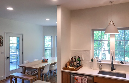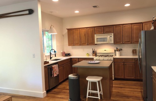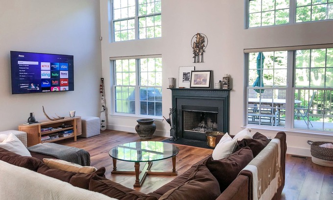 5 bedroom home with 3.5 baths means room for everyone! First floor Master bedroom with ensuite bathroom is perfect for grandparents. Massive open floor plan perfect for family game night and dinners after a day on the slopes or at the lake. Elevated outdoor deck with New Weber Grill & Cafe lights means picturesque outdoor meals for you and your family.