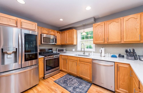 White noise machines and blackout shades are in every bedroom. Three spacious and well-appointed bathrooms keep everyone comfortable. Forgot your phone charger? There’s one in every room :)