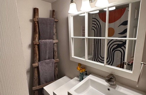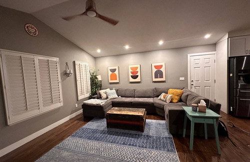 The property also has a rental guesthouse studio that can sleep 2. Spaces are detached with their own entrances, and provide private from each other. The driveway parking and hot tub are reserved for the main house guests. If you are looking for additional space for a family gathering you may rent both together.