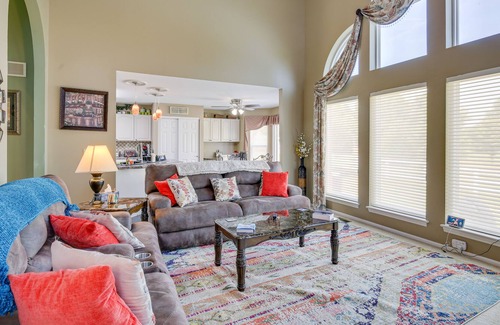 Elevate your Missouri getaway with this vibrant vacation rental! Boasting a colorful interior with unique murals, along with a stunning outdoor space facing the golf course, this home is ideal for the whole family or friend group. Feel at ease with the home’s 4 bedrooms, 2 full bathrooms, 2 half bathrooms, multiple living areas, an impressive home gym, and more. Then, explore the numerous attractions in the St. Louis area. End the night with a barbecue, followed by a movie next to the fireplace!