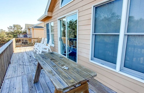 Song of the South is the perfect vacation home for your family! Countless updates in 2024 (furniture, paint, decor, lighting, and a huge outdoor shower). This 5 BR/4.5 Bath oceanside home has everything you need in Corolla. Located in Ocean Sands, you'll have access to the community tennis courts and 7 acre fishing lake. Plus, your a short drive or bike ride from all the great Corolla attractions like the Lighthouse, Historic Corolla Village, and more! A short walk (4 mins) will take you right to one of the most expansive, least crowded beaches north of Southern Shores! The house has a private pool and spa, tiki bar and propane grill. There is even a picnic table near the pool deck, as well as the top deck, so you can grill and feed the crew al fresco.