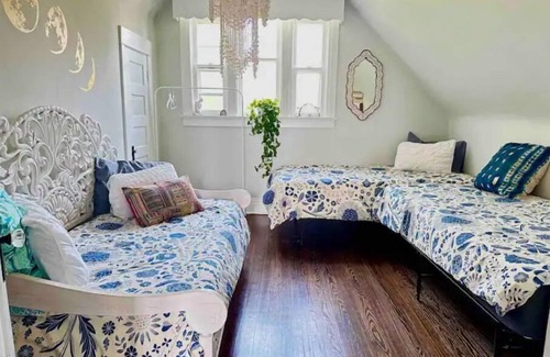 This large farm house has all of its old charm with bohemian flair. 5 minutes to nearest dispensary. 6 minutes to Denver Highlands neighborhood and 12 minutes to downtown. Beautiful works of art and crystals throughout the home. Large stocked kitchen and bright sunny windows are a great place to relax after a trip to Red Rocks. Full projector and movie screen 420 friendly patio STRL #009768