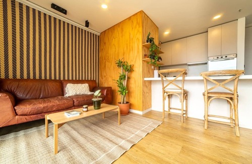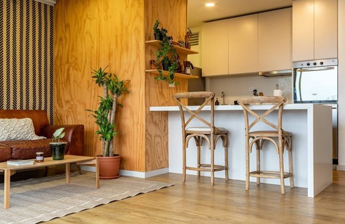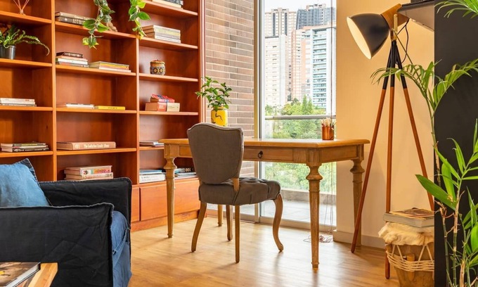 This ethnic colombian style apartament will make you feel like you're in a hotel boutique. It has an attention to detail with selected colombian crafts, coffee machines, books and it has amazing panoramic view of the city and the nearby mountains. Located in el Poblado, you will be walking distance to some of the main attractions in medellin- El tesoro mall, parque lleras, via primavera, etc... If your feeling lazy to cook, you can head downstairs to the high quality cafe/restaurant located on the 4th floor. The building also has great facilities like a fully equipped gym, pool, jacuzzi, steam room and work/study rooms.