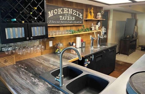 - BAR AREA: Includes large beverage fridge, sink, glassware and all the necessities to let the good times roll. The area is adjacent to the secondary living space and the game room.