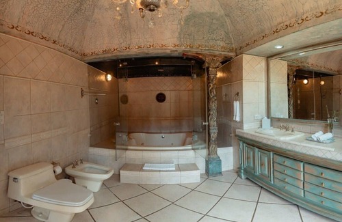 Features a large dining room, a central garden with fountain, a library with a working desk for peaceful reading, working or just enjoying the afternoon, a seating area in the central courtyard, a chef's kitchen which is for staff use only, but they are here to service you. Just ask, and they will guide or assist. A beautiful rooftop terrace with table and views of the volcano which you can hear echo in the mountains as it has mini bursts which take your breath away. The lush gardens of this home are enchanting. Also, enjoy the pool on the main floor when you feel ready for a dip.