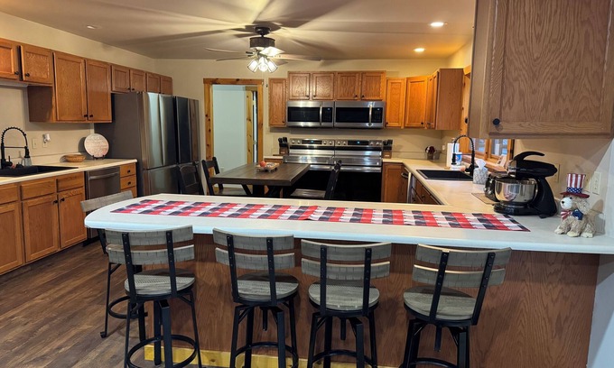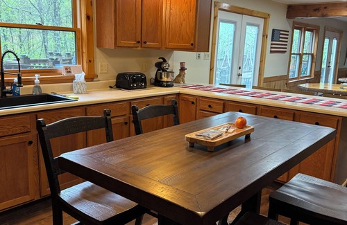 Located in Rebersburg, this delightful 9-bedroom lodge offers a tranquil escape for guests. With 3 king beds, 5 queen beds, plus unique sleeping arrangements like bunk beds: 4 twin and 2 doubles and 2 queen sofa beds plus 2 twin roller beds, everyone will find their perfect spot to unwind. The lodge features 6 bathrooms with 3 floors of enjoyable space. Completely remodeled in 2025. The kitchen is equipped with double everything and all the comforts of home for entertainment. Enjoy the gorgeous surroundings and take advantage of the game room, massive yard, deck space, large dining room, and WiFi during your stay. I almost forgot the huge living room with floor to ceiling real wood burning fireplace. We look forward to welcoming you to our place. If you enjoy fishing check out any 5 of the top 10 streams in Pa within 30 min drive. PSU football or any Penn State Event, Bryce Jordan Center only 45 mins. RB Winter State Park less than 15 mins. Lewisburg is just a quick drive on Rt 192. Bucknell is the closest university to Timberwind Lodge. The outdoor space is stunning with 212 acres of privacy with a yard big enough for a soccer or football game, volleyball area and half court basketball area with high fence to not chase balls, kids play set or choose from either of the outdoor fire pits. Want to grill out the is a high deck with plenty of updated seating for the whole group. What to host an event. Getting married, celebrating an anniversary or birthday-gathering. Message us for details additional event fee may apply depending on size of event.