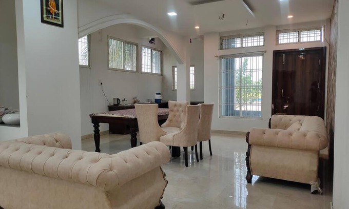 Providing free bikes, Spacious Private Home offers accommodations in North Lakhimpur. This property offers access to a terrace, free private parking, and free Wifi. The accommodation provides airport transfers, while a car rental service is also available. The apartment is composed of 1 bedroom, a fully equipped kitchen, and 3 bathrooms. Towels and bed linen are provided in the apartment. For added privacy, the accommodation has a private entrance and soundproofing. A mini-market is available at the apartment. Guests can also relax in the garden. The nearest airport is Lilabari (North Lakhimpur) Airport, 4.3 miles from the apartment.