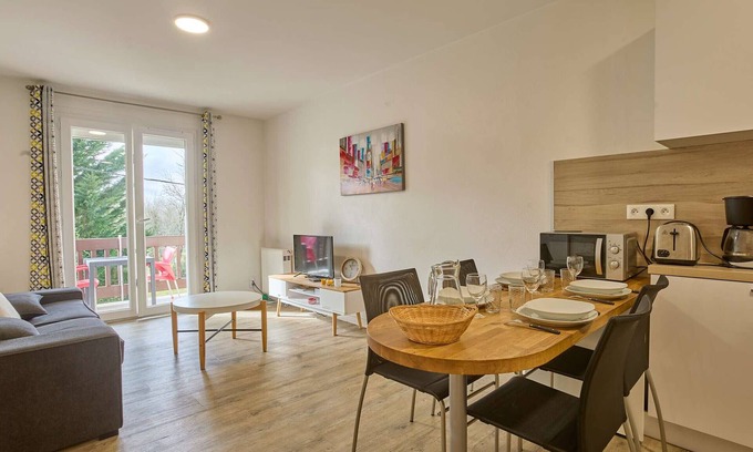 Spacious renovated T2, nature view, south balcony, Wifi, parking in Barbotan is located in Barbotan-les-Thermes. Spacious renovated T2, nature view, south balcony, Wifi, parking in Barbotan provides accommodation, featuring Pet Friendly, Child Friendly, Internet, among other amenities. This Apartment features Pet Friendly, Child Friendly, Internet, to make your stay a comfortable one.