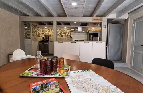 For a comfortable stay, high-quality bedding is provided, and utilities are included. Free Wi-Fi available. Imagine enjoying breakfast on the terrace, birdsong in the background, while the children play safely in the enclosed courtyard… In Usson-en-Forez, this gîte offers a relaxing stay surrounded by nature, combining comfort, tranquility, and exploration. Nearby: 190 km of marked trails to explore on foot or by mountain bike, diverse landscapes, a lake 4 km away for swimming or fishing, as well as a museum, cinema, river swimming pool, and sports fields. In any season, enjoy a moment of well-being in the 6-person Nordic bath, sheltered under the terrace, with views of the countryside. A true haven of peace in the heart of the Forez region.