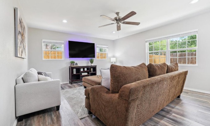 Spacious San Antonio Retreat with Private Patio! offers accommodations in San Antonio, 7 miles from Alamodome and 7.1 miles from Ripleys Believe It Or Not Museum. This vacation home features accommodations with a patio. Free Wifi is available throughout the property and The Alamo is 6.7 miles away. The air-conditioned vacation home consists of 3 bedrooms, a living room, a fully equipped kitchen with a dishwasher and a coffee machine, and 2 bathrooms with an a bath or shower and a hair dryer. Towels and bed linen are available in the vacation home. For added privacy, the accommodation features a private entrance. Henry B. Gonzalez Convention Center is 7.2 miles from the vacation home, while Tower of the Americas is 7.6 miles from the property. San Antonio International Airport is 4.3 miles away.