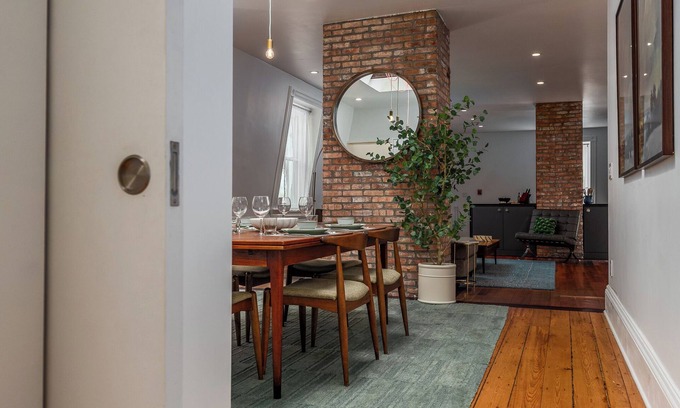 The rental is located on the full 3rd floor of a mixed-use building built in 1892. Lovingly renovated, the rental has great amenities and provides a contemporary space within a gorgeous historic property. Approximately 2,000 sq ft in size, you'll have lots of private space during your stay. The primary entrance and exit is through the front stairwell. A second stairwell is available for emergencies. Parking can be made available just off-site.