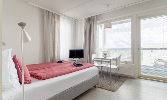 Welcome to this spacious and modern studio on the 7th floor with a large private balcony—perfect for relaxing and enjoying open views over Hämeenlinna. This bright, stylish space offers comfort and a peaceful atmosphere, ideal for both short and extended stays. Whether you're here for work or leisure, you'll love the natural light, fresh air, and contemporary design. A perfect base to unwind and feel at home above the city.