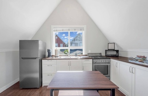 Newly renovated, self contained, 500 sq ft studio. Featuring: a fully equipped kitchen, washer/dryer, premium wi-fi, A/C & ceiling fan, and a queen size bed and a desk.