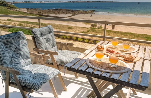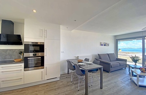 LARMOR-PLAGE - REF 149, rated 2 épis by Gîtes de France, virtual tour available on the agency website or upon request - Sleeps 2/3 - Full sea view, direct beach access, and 700m from shops.