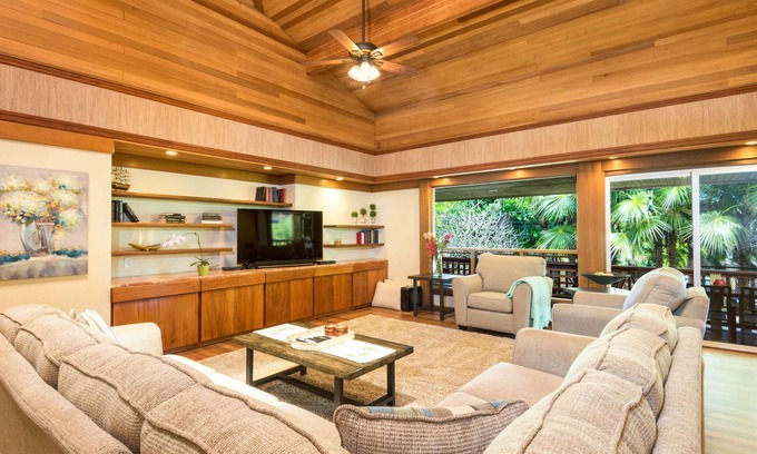 Spacious tropical getaway with lanais - just steps from the ocean | House in Kilauea