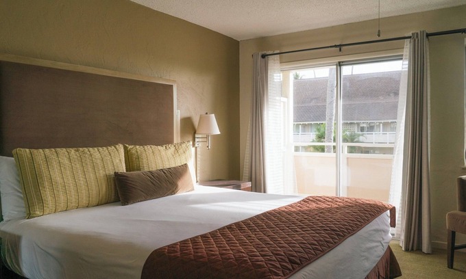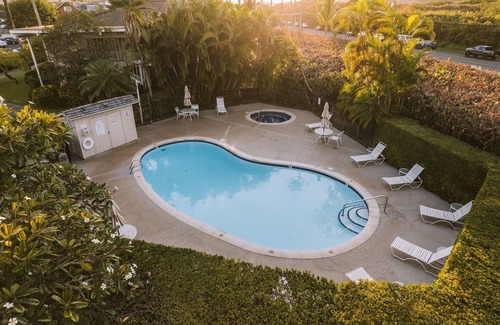 Step into a world of relaxation, surrounded by swaying palm trees and vibrant hibiscus blooms. Your spacious suite features a full kitchen, separate living room, and private lanai. Refresh yourself in our sparkling outdoor pools, perfect for relaxation or family fun. Unwind in the soothing hot tubs while gazing at the starry Hawaiian night sky for ultimate relaxation. Offering family-friendly amenities and a convenient location, we provide the ideal home-away-from-home for your Hawaiian getaway.