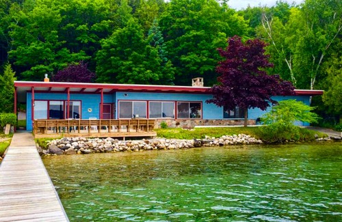 Spacious vacation gem on Crystal Lake w/gas fireplace, WiFi, central AC, firepit | House in Frankfort