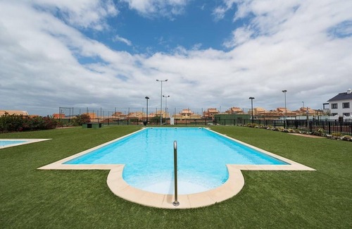 With elegant and sophisticated interiors, this Holiday Home in Corralejo has 4 bedrooms and offers a luxurious holiday. The Holiday House is ideal for families or groups of up to 9 people. It has a well-equipped kitchen with a dishwasher, perfect for preparing your favorite recipes, a living-dining room, a toilet and two bathrooms, one with a shower and the other with a bathtub. In the urbanization there is a tennis court and two swimming pools, one is for children. The supermarket is very close to the accommodation. Enjoy the delicacies of the surrounding restaurants. In addition, there are many other tourist attractions worth visiting. The bedrooms are spacious and well prepared for your rest. This house has a terrace with a private garden, garden furniture, barbecue and accepts pets. Please, it is important that you be responsible and do not leave your pet alone in the house and prevent it from climbing on beds and sofas. About Belvilla: With a Belvilla you are assured of a successful holiday. There is always a Belvilla that will give you an unforgettable holiday. We have a surprising and wide range of unique holiday homes for the summer holidays, a weekend away or a week of winter sports. The range consists of more than 40,000 holiday homes in 20 European countries. Unique holiday homes with typical regional features in beautiful locations, whether on the coast, high in the mountains or centrally in the city center. Think of authentic country houses with swimming pool in France, special agriturismos in Tuscany, sturdy chalets in the Alps or large houses in the Ardennes. For a family, a couple or for a large group. You will find them in the most beautiful places, so there is plenty to do and discover for everyone! We are constantly looking for new homes and new destinations that match the wishes of our guests. A Belvilla home gives you the freedom to enjoy breakfast in your pyjamas or continue a good conversation into the morning hours without having to worry about the bar's closing time. Prepare gourmet meals with fresh local ingredients in your own kitchen and take advantage of having your own swimming pool to do as many cannonballs as you want! In other words, you can enjoy complete privacy in your home away from home.