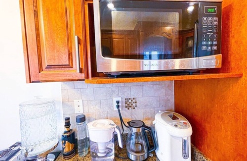 - Fully equipped kitchen featuring modern appliances including refrigerator, oven, stove, dishwasher, microwave, toaster, and coffee maker