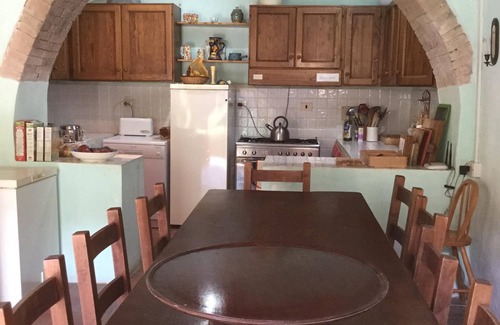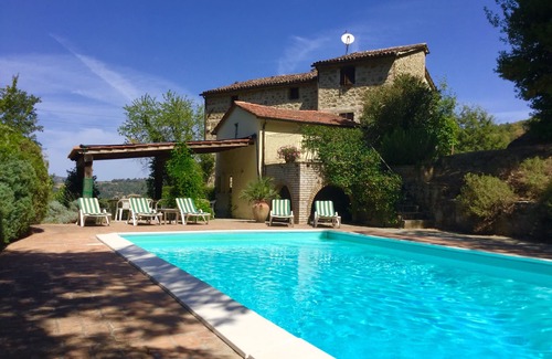 A large 200 year old stone-built former farmhouse on the border of Tuscany and Umbria, situated 1.5kms up a white road in a clearing on a beautiful wooded hillside with uninterrupted views extending across to the other side of the valley. It is secluded, private and tranquil but close to amenities. The house is ideal for those looking for a relaxing break in the heart of Italy with extended family or 2 or 3 family friends.