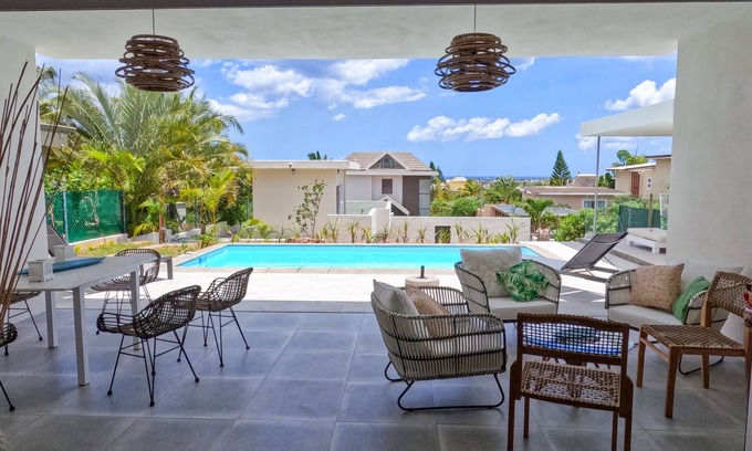 Superb recently built villa with modern architecture, ideal for a dream vacation. Albion is located on the west coast which enjoy the best sunshine rate all year round. This residence combines both tranquility due to its location while remaining accessible within 2 minutes by car where you will find everything you need as well as restaurants and local food. You can enjoy the famous Club Med beach and all water sports activities. Enjoy your private pool. View on the Albion Light house.