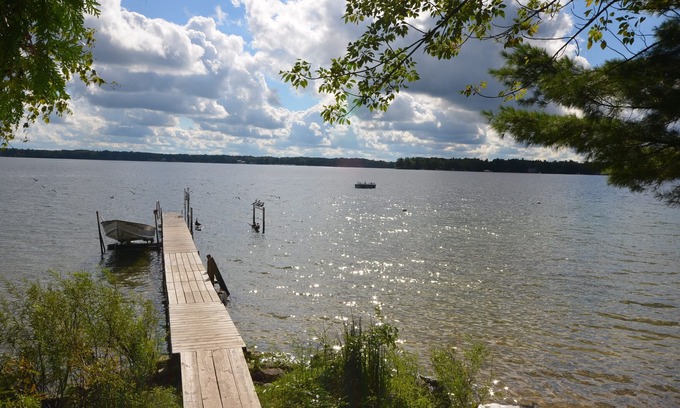 Outside, beautiful Long Lake is waiting. There are a few steps down to the lake from the patio area. Swimming, boating, and fishing are just outside the door! A row boat for some fishing fun is included! The lake has a nice sandy bottom for the little ones. A charcoal grill and picnic table are available for an outdoor meal, and the firepit makes a perfect evening gathering place. A Dock and boat mooring is available and will accommodate up to a 17’ boat 3000lbs max. Do not tie up to the dock, it is for loading and unloading only. (Dock not guaranteed after Labor Day Weekend or before June 15) there is a camera facing the dock for security purposes.