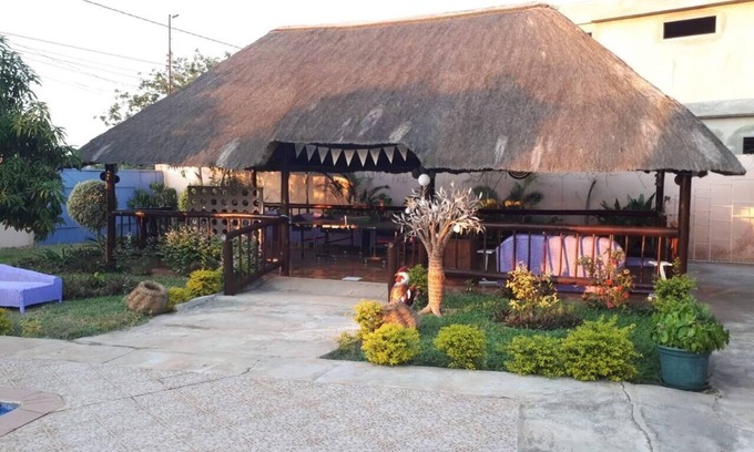 Families with kids enjoy our place most because of the ample play space for the kids. There is a fairly large outside space that hosts a garden, a large family-size swimming pool and a thatch-roofed patio where the family can sit, eat, play, relax and/or watch the pool and garden.