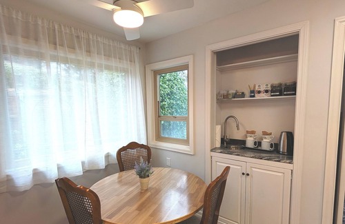 This PRIVATE, QUIET & SPARKLING CLEAN suite with a private entry and a full kitchen sleeps 2 and can sleep 3. (See "Beds" below.)