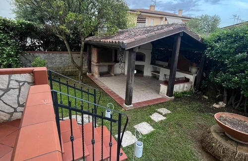 1500m dal mare, casa attrezzata per vacanze in famiglia. Ampio giardino privato con gazebo barbecue, cucina attrezzata ampio salone, Wi-Fi e aria condizionata. Un posto ideale per riposo e scoprire posti e sapori del Circeo