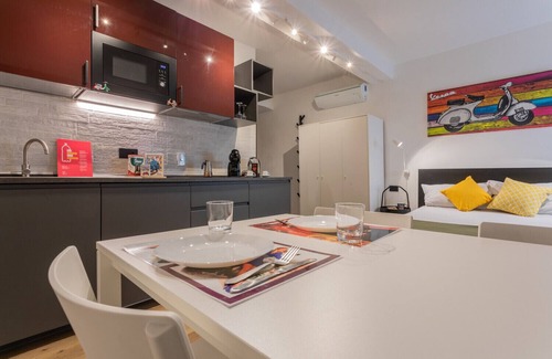 Modern studio apartment in the heart of Turin close to Piazza Castello and Piazza San Carlo.The studio is on the third floor of a railing house with an elevator. It has been completely renovated and furnished to honor the iconic Italian Vespa. The entrance opens to a combined day/night area with an open kitchen equipped with a microwave, toaster, coffee maker, espresso machine, and dining table. The room has a dining table, television, and a desk. Finally, there is a queen-size bed, a wardrobe, and a bathroom with a shower.Wi-Fi, washer, and dryer will be at guests' complete disposal.*The apartment is located in the ZTL (limited traffic zone) area, therefore we suggest leaving the car in one of the nearby parking and enjoying the old town on foot.Cot and high chair available upon request, at an extra cost of 35€ per stay.*Upon arrival or a few days before arrival it may be required to pay a tourist tax, which varies according to local regulations. You will find all of your reservation details within the Guest Area of Wonderful Italy.We also offer our guests authentic experiences to live in contact with the locals. If interested, check out our website wonderfulitaly. eu or contact us and we will be happy to help you create your perfect vacation discovering the beauty of Italy. The wonderful city of Turin, the capital of Piedmont and known for chocolate, offers countless opportunities and experiences. The city is known for the sophistication of its architecture. One can admire sumptuous Baroque buildings that line Turin's great squares, such as Piazza Castello and Piazza San Carlo. In the historic center stands the Mole Antonelliana, one of the symbols of Italy, along with the Royal Palace of Turin and Palazzo Madama. Turin offers attractions for every taste, from outdoor activities to gastronomy. For a stroll among the greenery and the scent of flowers, you can visit the Botanical Garden of Turin built on the left side of the Po River, and the famous Valentino Park close to the historic center. Today the province stands as Italy's best center for chocolate processing, and every year the "Cioccolatò" event is inaugurated with parties, events, and tastings. Turin Caselle Airport is just 17.7 km from the apartment, while Turin Porta Nuova Station is 1.2 km away.