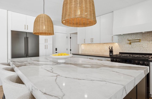 The kitchen is a culinary dream, equipped with high-end appliances and a dedicated coffee station, making it perfect for entertaining or preparing a gourmet meal.