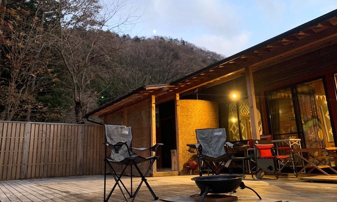 There are no unnecessary sounds All y / This plan includes two meals and is limited to two people For dinner we provide a BBQ food set with Gunmaproduced brand pork and vegetables and for breakfast we provide a hot sandwich set Please bring your own drinks and other ingredients BBQ equipment and charcoal are also provided so you can enjoy it emptyhanded
